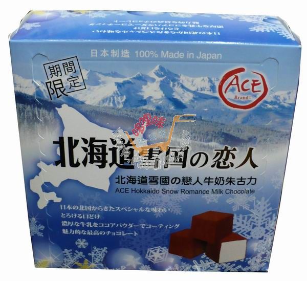 品 名:ACE北海道—雪國(guó)之戀人牛奶朱古力/55克 進(jìn)口食品批發(fā)