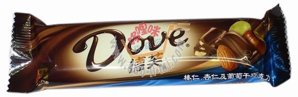 品 名:德芙榛仁杏仁及葡萄干巧克力43克 進口食品批發(fā)