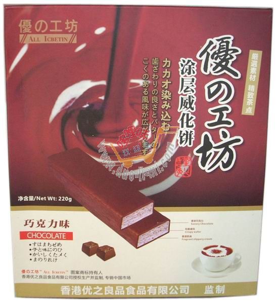 品 名:優(yōu)之良品涂層威化餅(巧克力味)/220g 進口食品批發(fā)