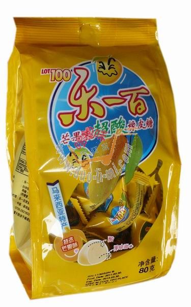 品 名:樂一百超酸橡皮糖(芒果味)80克 進(jìn)口食品批發(fā)