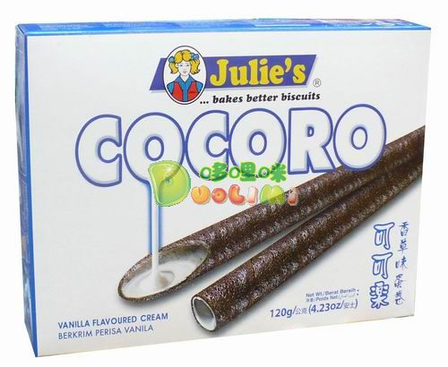 品 名:茱莉蛋卷可可樂(香草味)120克 進口食品批發(fā)